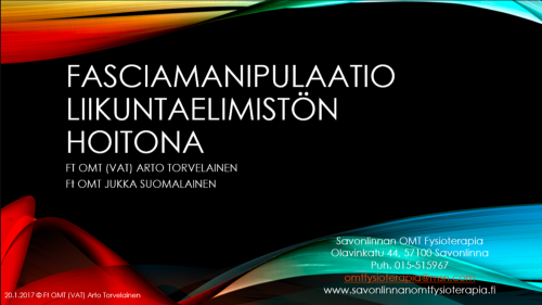 YhteystiedotSavonlinnan OMT Fysioterapia Olavinkatu 44, 2.krs. 57100 SAVONLINNA Puh. 015 515967 www.savonlinnanomtfysioterapia.com eMail: